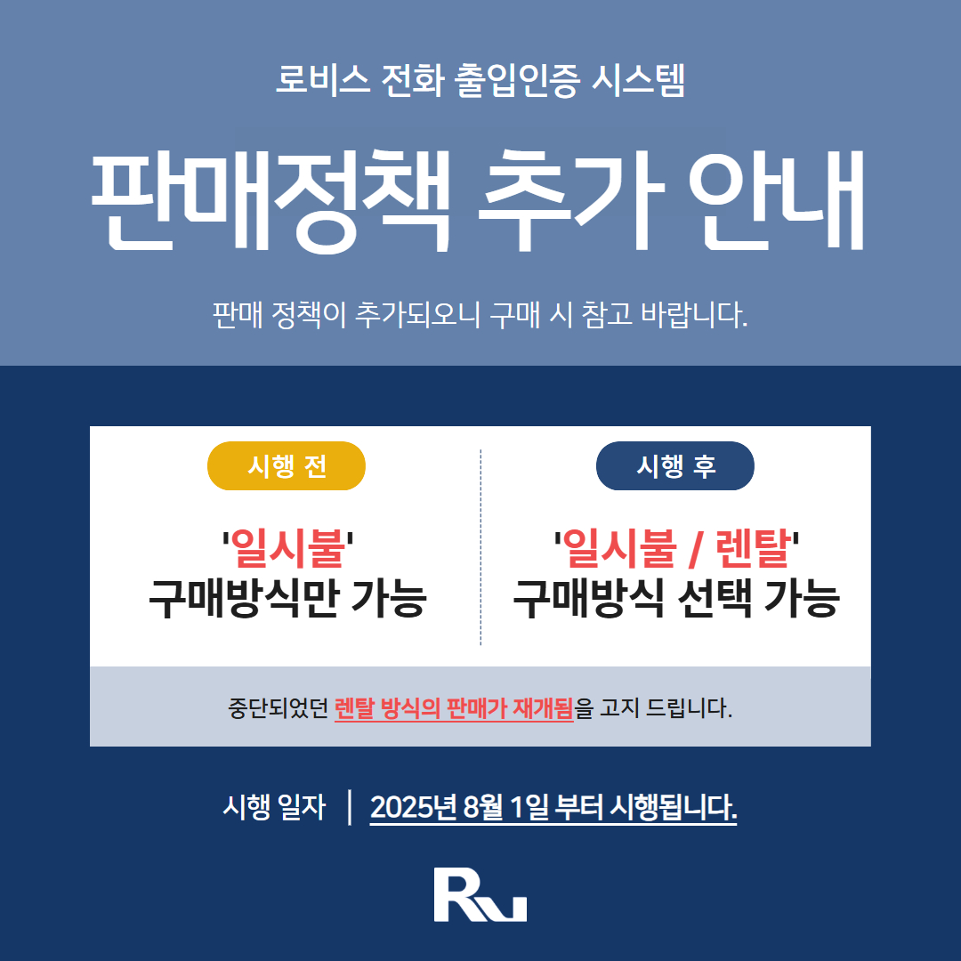 [공지사항] [로비스 전화 출입인증 시스템 판매정책 추가 안내]